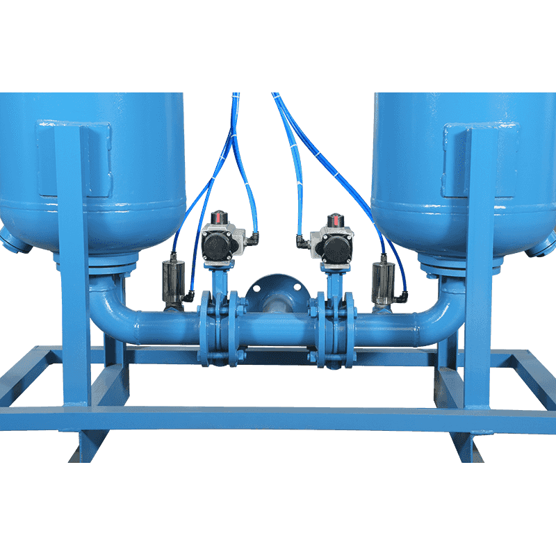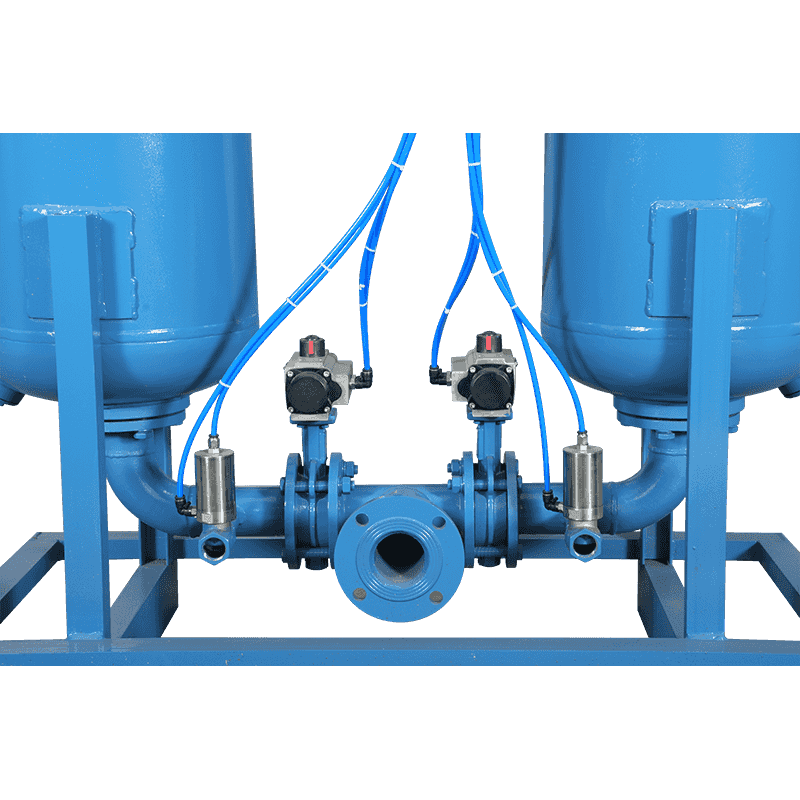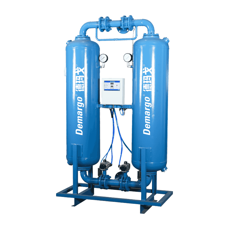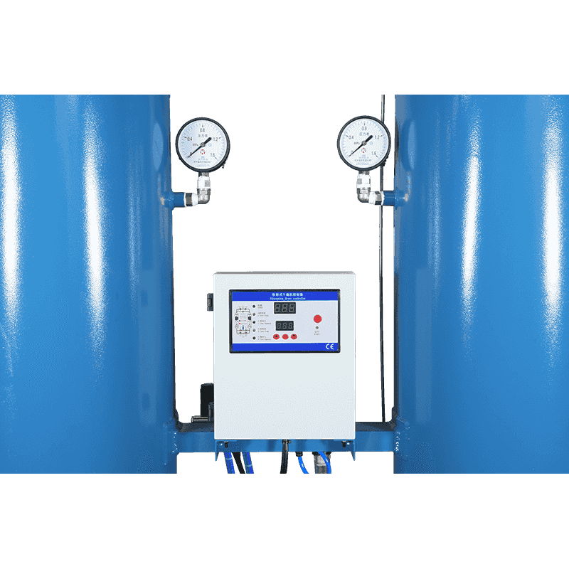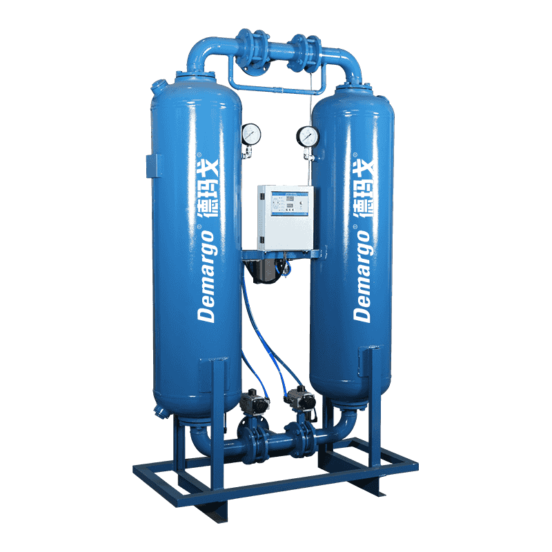 Bezpřítomná regenerační adsorpční sušička používá k dosažení účinku sušení „adsorpce tlaku“. Protože schopnost vzduchu držet vodní páru je nepřímo úměrná tlaku, část vzduchu po sušení (nazývané regenerační plyn) se dekomprimuje a rozšíří se na atmosférický tlak. Tato změna tlaku způsobuje, že rozšířená vzduchová sušička je a pak je povolena protékat vrstvou vysychání, která není spojena s proudem vzduchu (tj. Sušicí věž, která absorbovala dostatek vodní páry). Suchý regenerační plyn absorbuje vlhkost v vysychání a vytáhne ji z sušičky, aby se dosáhlo účelu odvlhčení.