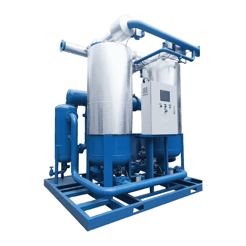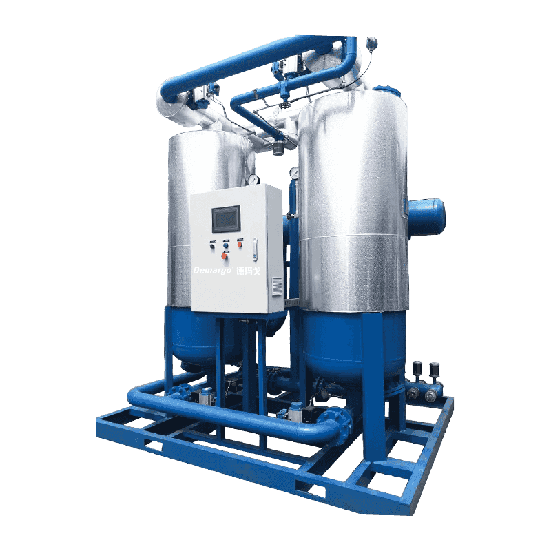 Sušič komprimovaného odpadního tepla používá k zahřívání a regeneraci adsorbentu odpadní teplo pečivového kompresoru bez oleje; Plně využívá odpadní teplo v systému komprimovaného vzduchu. Bez použití topného zařízení lze také dosáhnout účinku topné sušičky, což plně demonstruje jeho vlastnosti úspory energie. Rosaný bod hotového plynu může dosáhnout -40 ℃. Používá samostatný řadič PLC, který je stabilnější a spolehlivější než mikropočítač s jedním čipem. Řídicí ventil používá ventil motýlů, aby zajistil bezproblémový přepínání více než 1 milionkrát. Návrh pokročilého přepínače umožňuje komprimovaný vzduch rovnoměrně kontaktovat adsorbent a eliminovat jev toku kanálu.
