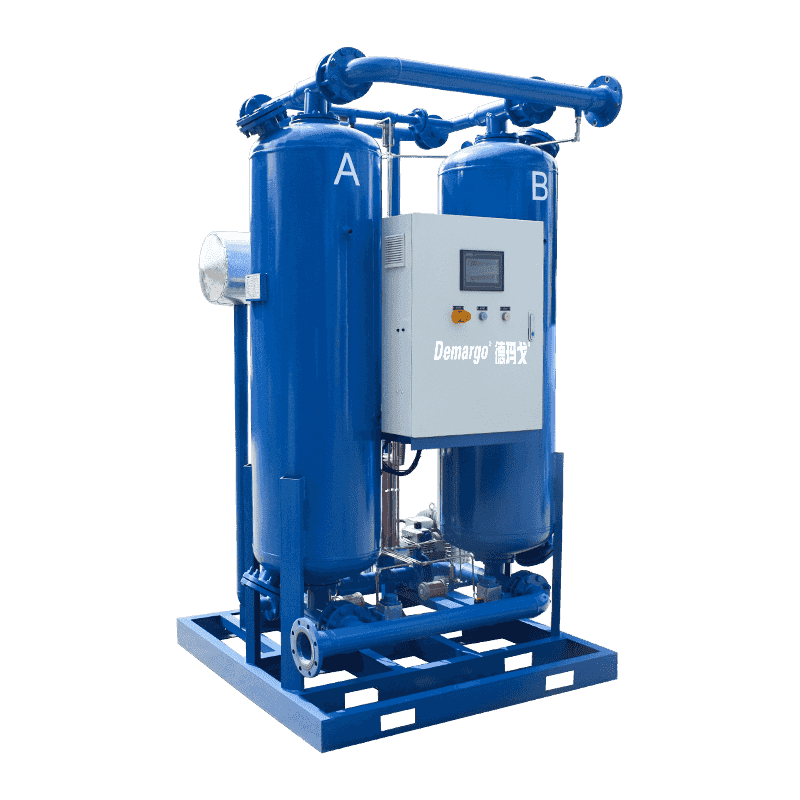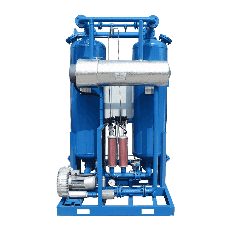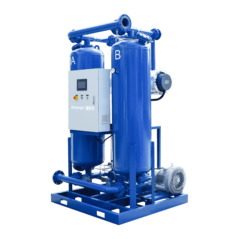 Adsorpční sušička regenerace tepla s nízkým plynem patří do sušičky regenerace topení. Jeho pracovním principem je použít dmychadlo k extrahování okolního vzduchu a poté regenerovat vysoušedlo v adsorpční věži po zahřívání, zabránit ztrátě plynu regenerační adsorpční sušičky mikro-heat ve fázi zahřívání. Skvělená fáze využívá po chlazení místo části hotového plynu, čímž se v největší míře šetří energii. Je to adsorpční sušička s účinkem „úspory energie a snížení emisí“, který odpovídá národní politice mé země. Spotřeba energie regenerace sušičky regenerace topení má dvě formy, první je tepelná energie potřebná k tomu, aby adsorbent dosáhl desorpční teploty a odpařoval vodu, a druhým je plyn používaný jako nosič tepla a chlazení. Při sušičce regenerace vytápění výbuchu, protože se jako nosič tepelné energie používá okolní vzduch, je spotřeba stlačeného vzduchu výrazně snížena.